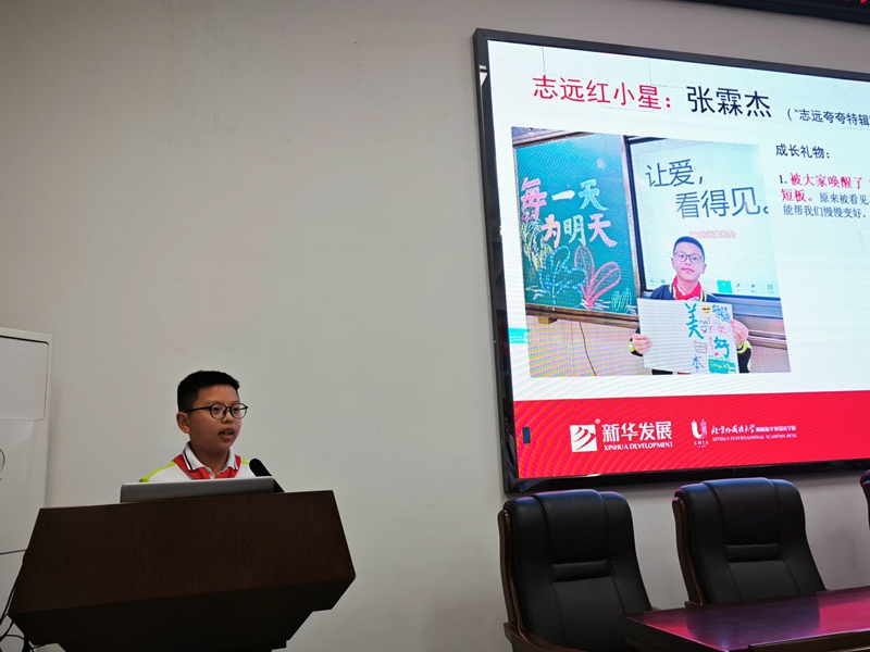 六(1)志远中队张霖杰、孙艺心同学化身班级“夸夸小使者”,用温暖点亮校园。在全体教师会上,两位“红小星”代表以童真视角,为全体教师呈现了一场别开生面的演讲。他们用稚嫩却真挚的语言,将同学们与老师的闪光点娓娓道来,孩子们用比喻、用细节、用行动,将“发现美”的课堂转化为生动的成长教育课。