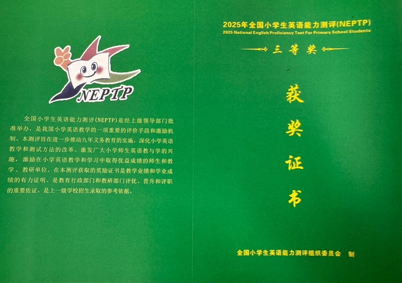 全国中小学英语能力测评(NEPTP)是一项面向全国中小学生的权威英语学科竞赛,旨在全面考察学生的英语语言能力、思维素养及综合应用水平。比赛分为省级初赛和国家级复赛两个阶段,涵盖听力、阅读、写作及口语等多维度测评,竞争激烈,含金量高。