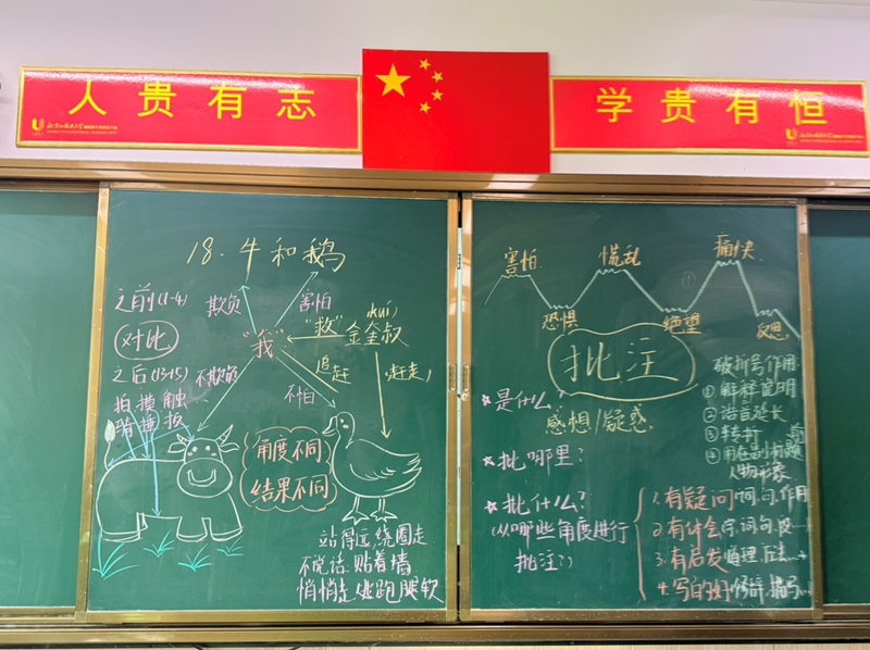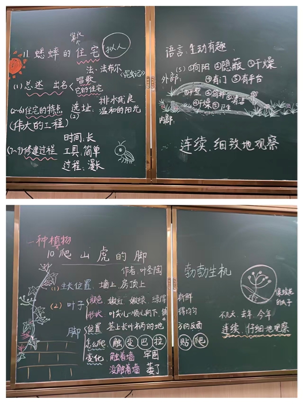 板书引路,思维开花。北外新华小学部四年级语文组的老师们,以板书为桥,打通了文本与思维的壁垒;以导图为翼,让孩子们在语文的天地中自由翱翔。在这里,每一笔板书都凝聚着教育的智慧,每一幅导图都承载着成长的力量。这种将美学设计与思维训练相结合的教学方式,不仅让语文学习变得生动有趣,更在孩子们心中播下了逻辑思维与创新表达的种子,让他们在文字的滋养中,收获看得见的成长与进步。