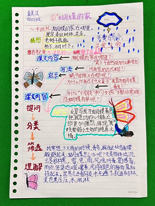 思维导图的创作过程,亦是深度学习的过程。孩子们时而驻足黑板前,对照板书校准思路;时而围坐讨论,分享对文本的独特理解;时而低头疾书,将思考的火花凝固在纸面。原本抽象的段落大意,化作了清晰的节点;深奥的思想内涵,变成了直观的图形。当孩子们举起自己的作品,眼中闪烁着成就感与求知欲,那些色彩斑斓的思维导图,不仅是学习成果的展现,更是思维成长的见证。