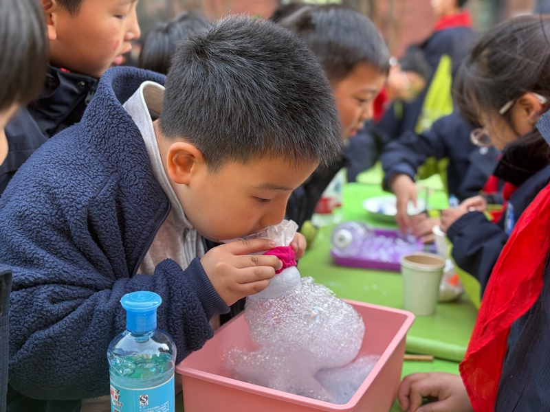 初次体验的一年级同学兴奋不已:“这是我第一次参加这样的科技节,特别开心和激动。每个摊位都超有趣,同学们耐心演示还讲解原理,一圈下来,我学到了好多知识!”这些精彩展现,皆出自小学部学生之手。他们自主设计,在一千余位师生面前自信演示讲解,不仅考验了科学知识储备,更锻炼了表达能力。